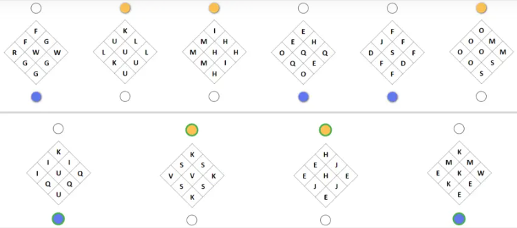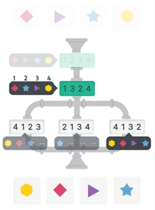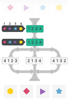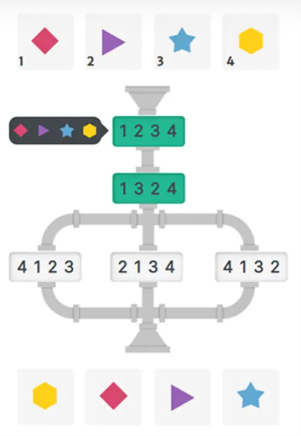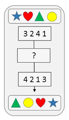 Elke cijfer in de code verwijst naar de positie van een symbool in de vorige rij (bijvoorbeeld: 2341 betekent dat het eerste symbool in de nieuwe rij van positie 2 komt, het tweede van 3, enzovoort). Hoe meer codes in een opgave, hoe uitdagender de vraag.