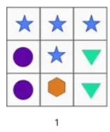 De symbolen staan nu in de volgorde: hart – cirkel – ster – driehoek.
