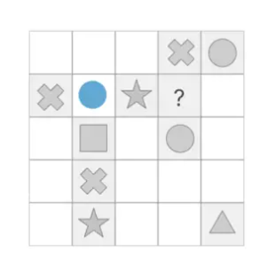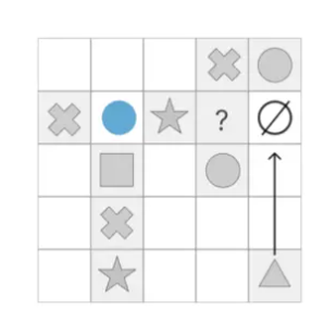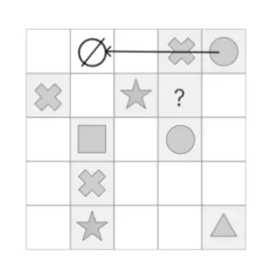 De AON scales lst-test lijkt enigszins op een Sudoku. In elke van de 15 opgaven krijg je een raster met verschillende symbolen te zien. Eén vakje is gemarkeerd met een vraagteken.