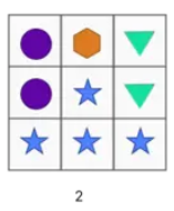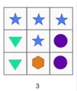Oplostip: binnen één opgave blijven de vormen en kleuren altijd gelijk (de ruit blijft rood, de ster blauw, enz.).