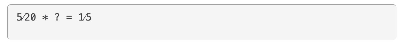 Breuken maken het wat lastiger. In dit geval is de eerste stap om 5/20 mentaal te vereenvoudigen naar ¼.
