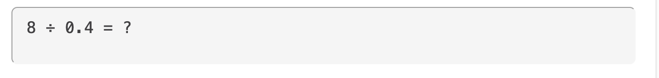 De eerste manier is te bedenken dat 0,4 tien keer in 4 past (je verplaatst de komma één plek naar rechts), en dus twee keer zo vaak in 8.