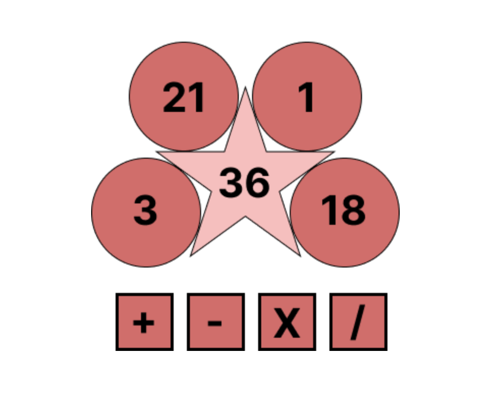 Gebruik vier cijfers en rekenbewerkingen om een eindgetal te bereiken. Je moet alle vier de cijfers gebruiken. Dit spel beoordeelt je probleemoplossend vermogen en rekenvaardigheid.