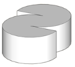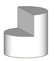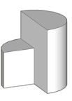Je kunt de vraag ook oplossen door te zoeken naar een figuur die bestaat uit twee vlakken met telkens driekwart van een cirkel.