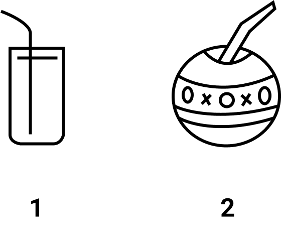 De mate waarin een glas het sap koud houdt, hangt af van de verhouding tussen het volume en het oppervlak. Beide glazen bevatten evenveel sap, maar het cilindervormige glas (glas 1) heeft een groter oppervlak dan het bolvormige glas (glas 2).