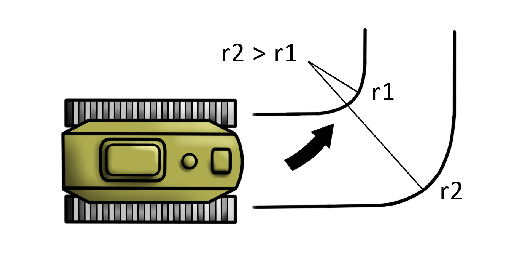 Wanneer een voertuig draait, moet de buitenste rupsband (of ketting) sneller bewegen dan de binnenste. Dat komt doordat de buitenkant van de bocht een grotere afstand moet afleggen in dezelfde tijd.